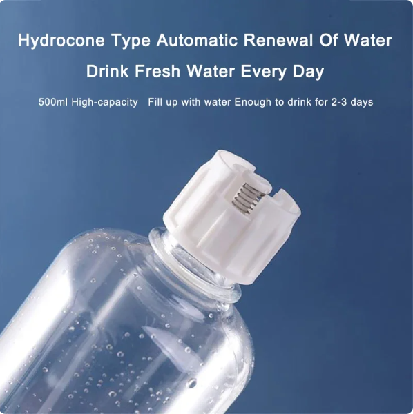- The Automatic Water Supply Cat Bowls operate on a siphon principle, ensuring a stable water level and automatic water supply. An anti-rust SUS spring preserves the freshness of every drop, while the generous 500ml capacity can sustain pets' hydration needs for 2-3 days.